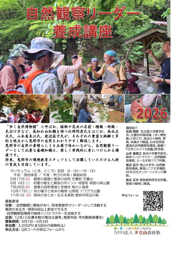 恵那市の素晴らしい自然を感じ、将来恵那市の環境教育スタッフとして活躍できる、